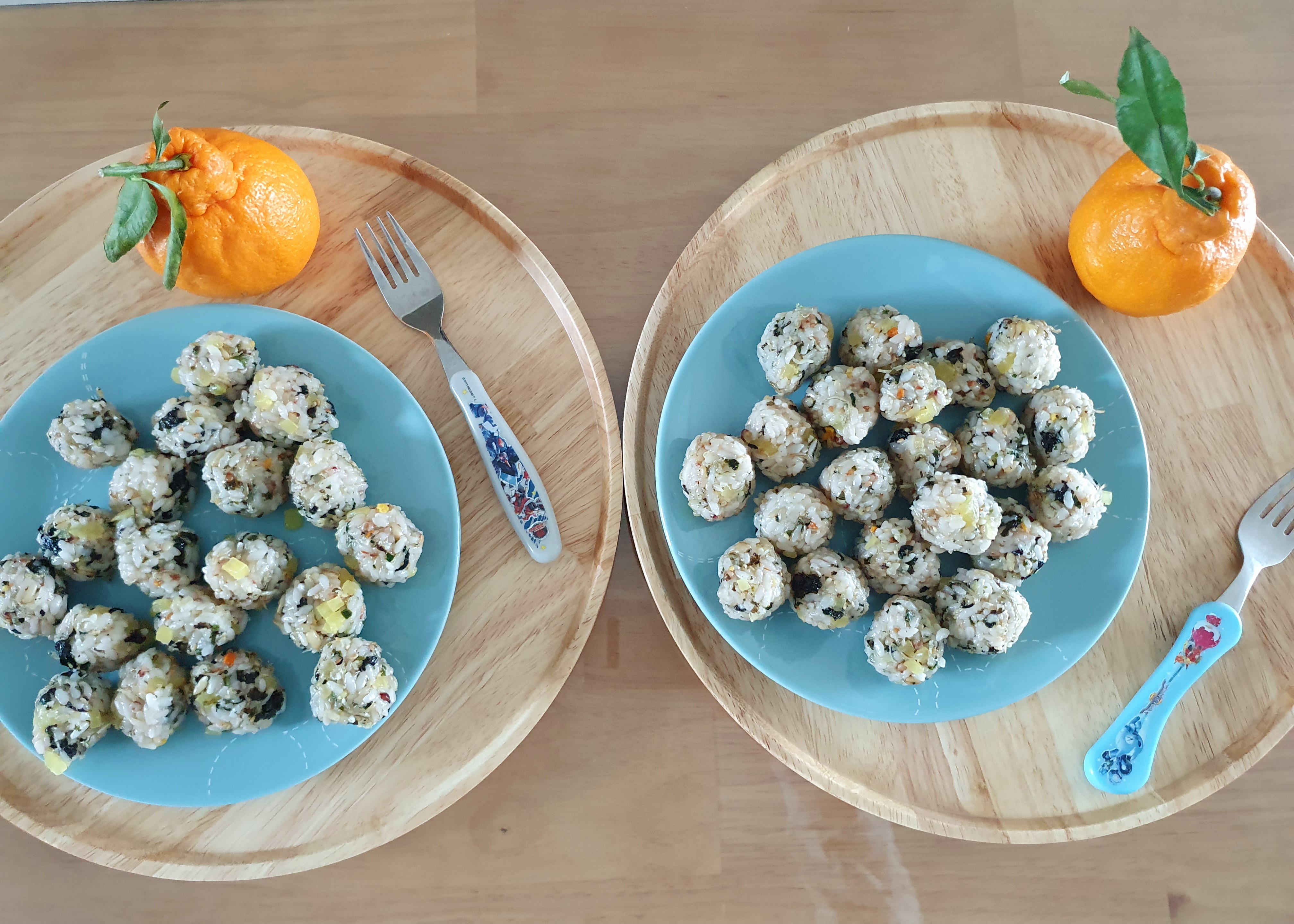 가끔은 참치에 마요네즈 넣어 동글동글 주먹밥 만들어 김가루 굴려주기도~