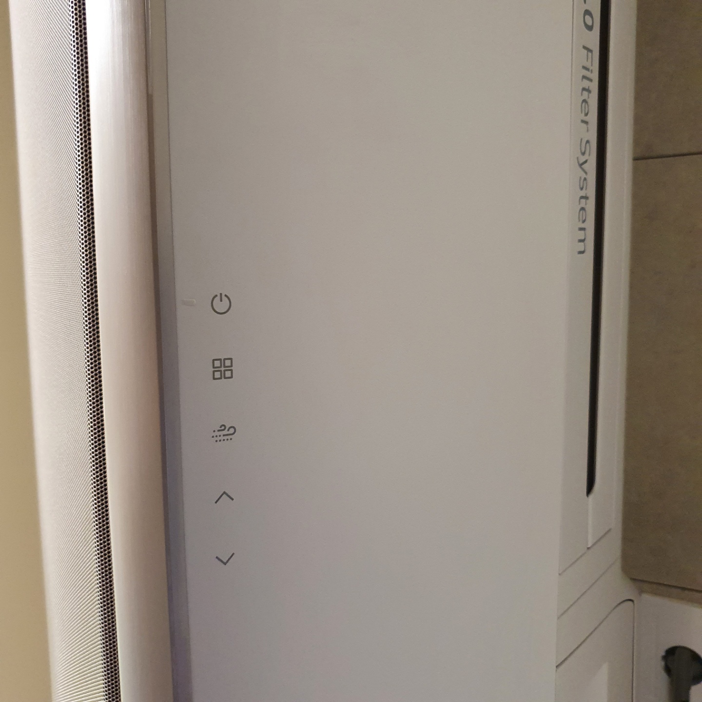 스탠드 에어컨 옆면에 전원버튼 깔끔하다