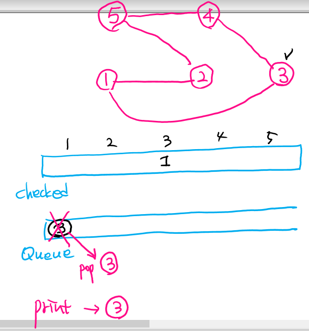 1. 단계 : 시작 정점을 방문했다고 표시하고, Queue에 push