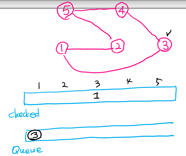 next중에 방문하지 않은 정점이면, 방문 표시하고 queue에 push
