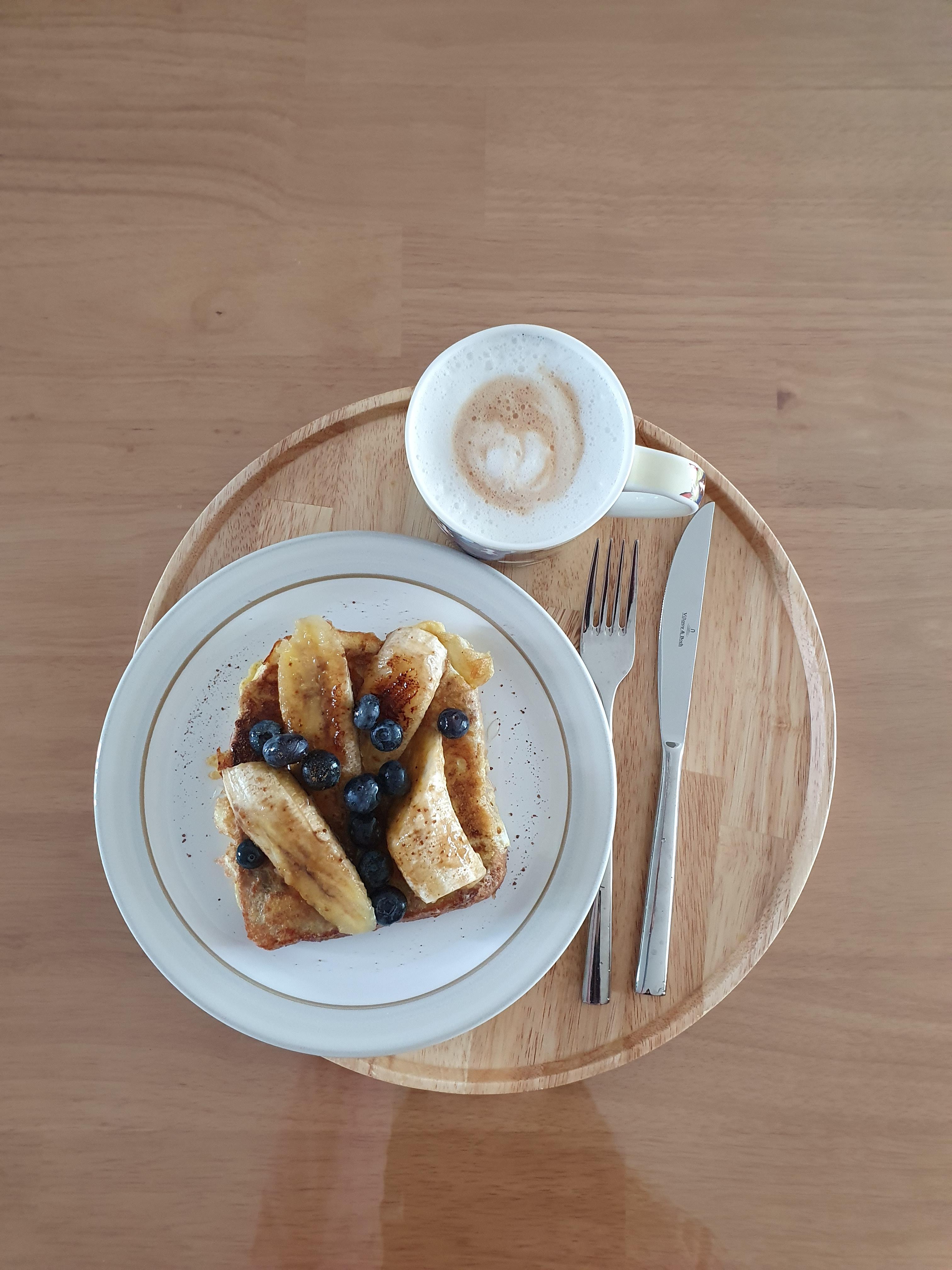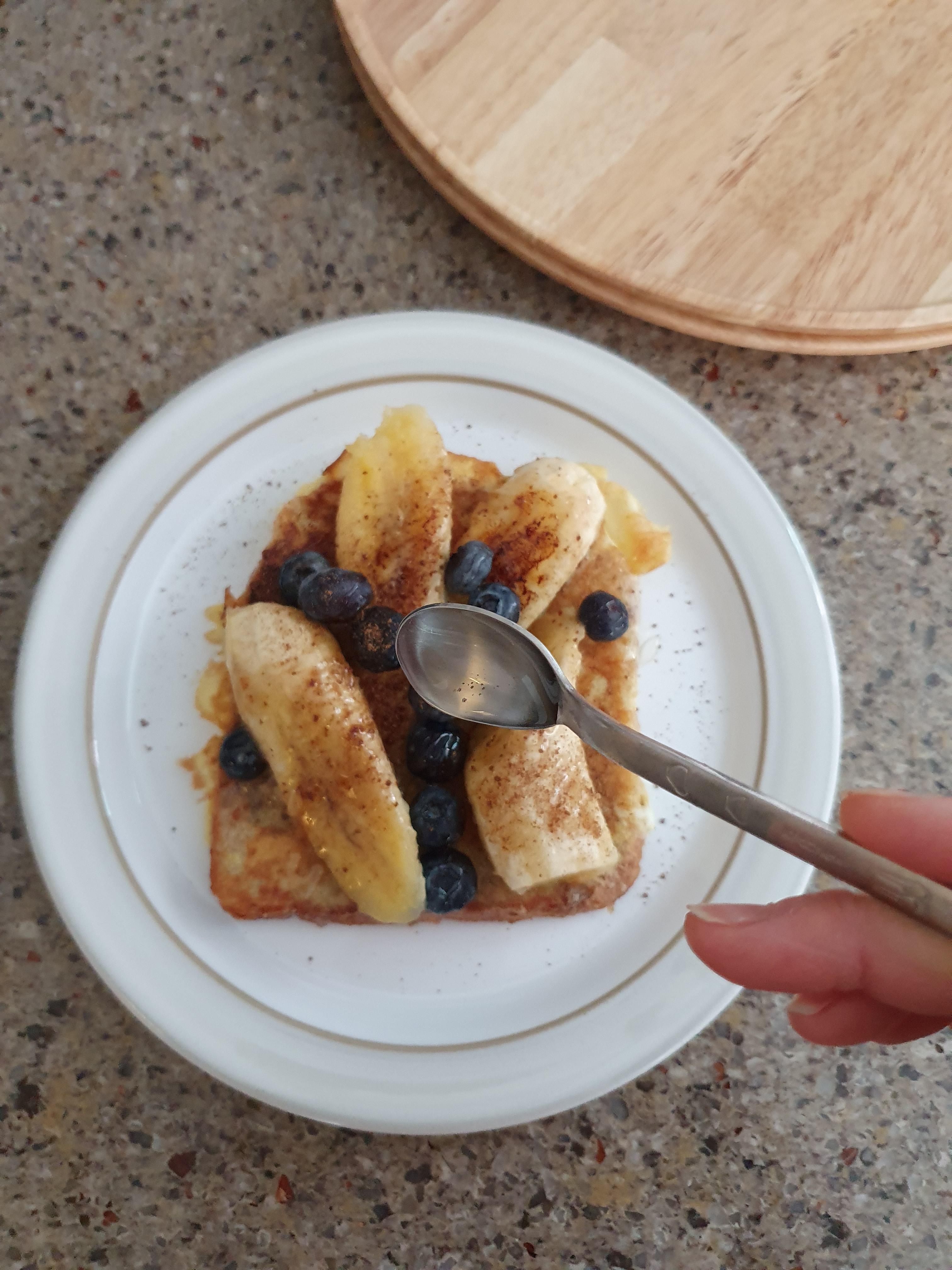 토스트에 구운 바나나 올리고 블루베리도 올려줌