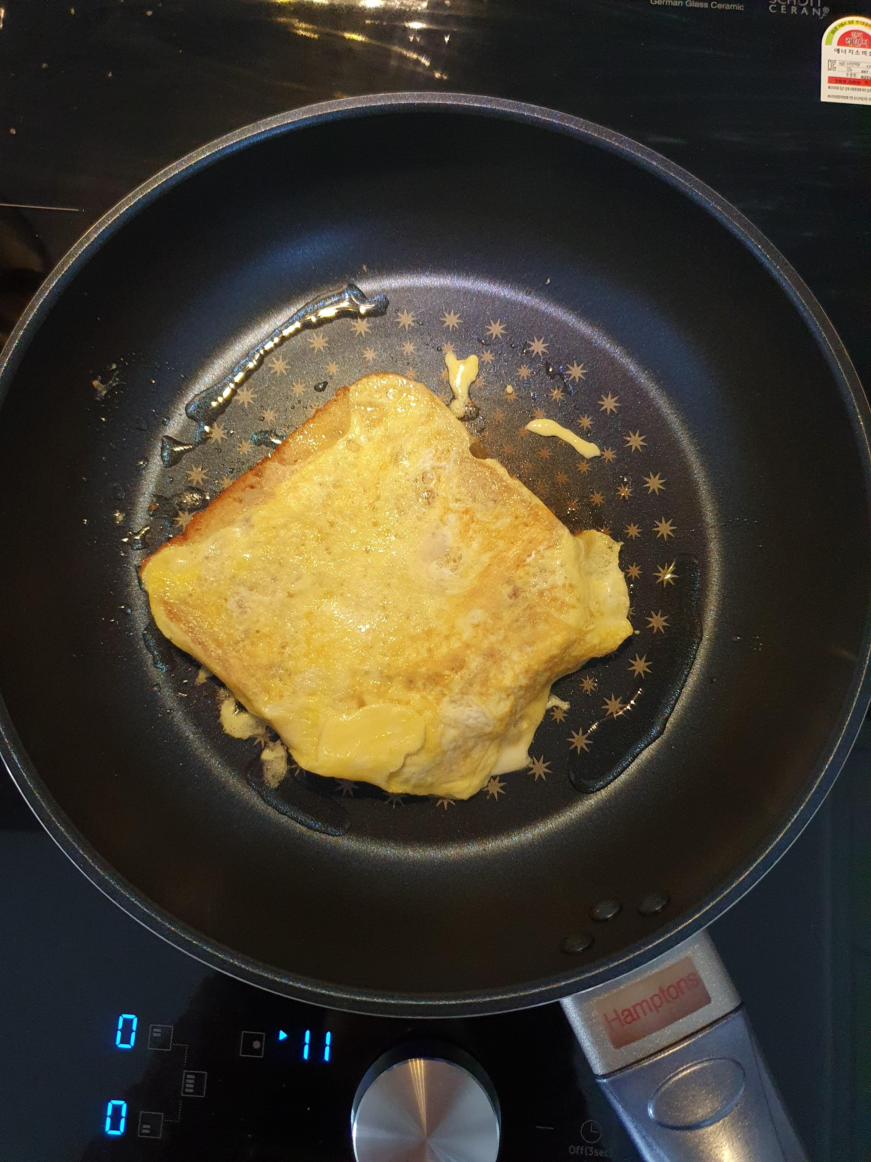 식빵에 계란물 묻혀 앞뒤로 노릇노릇